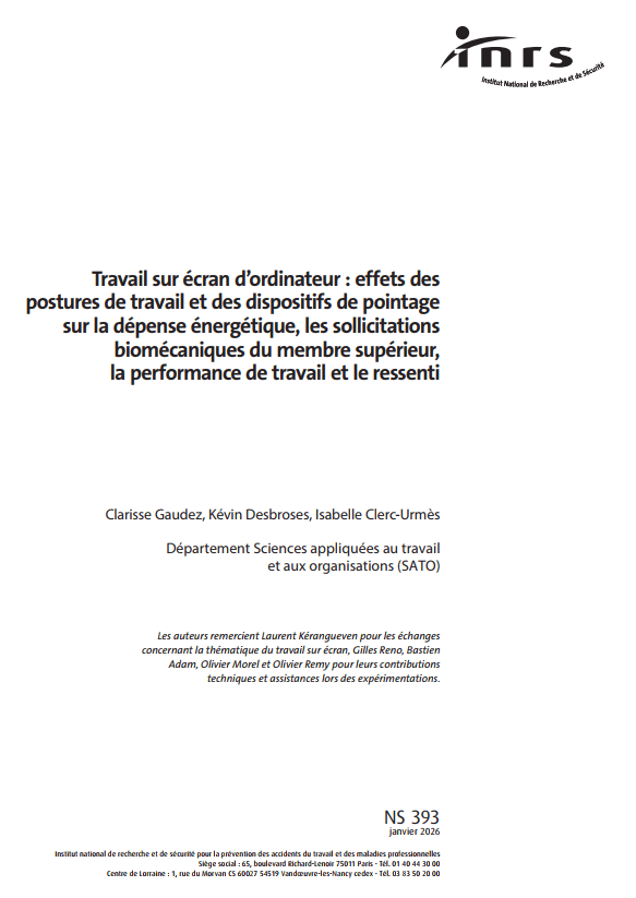 Cette étude examine l'influence de différentes postures de travail et configurations de dispositifs de pointage sur la dépense énergétique, les contraintes biomécaniques du membre supérieur, la performance lors d'une tâche et les sensations ressenties par les utilisateurs. Le travail sur ordinateur est le plus souvent réalisé en position assise prolongée, correspondant à une position sédentaire. De nouvelles postures plus actives ont donc été proposées, mais elles peuvent modifier l'utilisation des dispositifs de pointage, notamment la souris, souvent impliquée dans l'apparition d'inconfort, de douleurs ou de troubles musculosquelettiques.